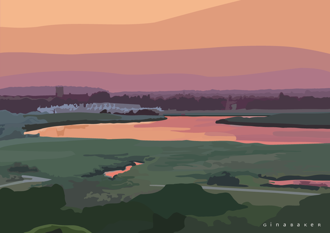 You can see this view standing on top of Hengistbury Head (Warren Hill) at the triangulation point. The regressive expanse of landscape looks like a comfy duvet against the soft reflective oranges and mauves of the setting sun. I like seeing how far I can see along the horizon in this print as it draws you in. Calming, restful, peaceful.
