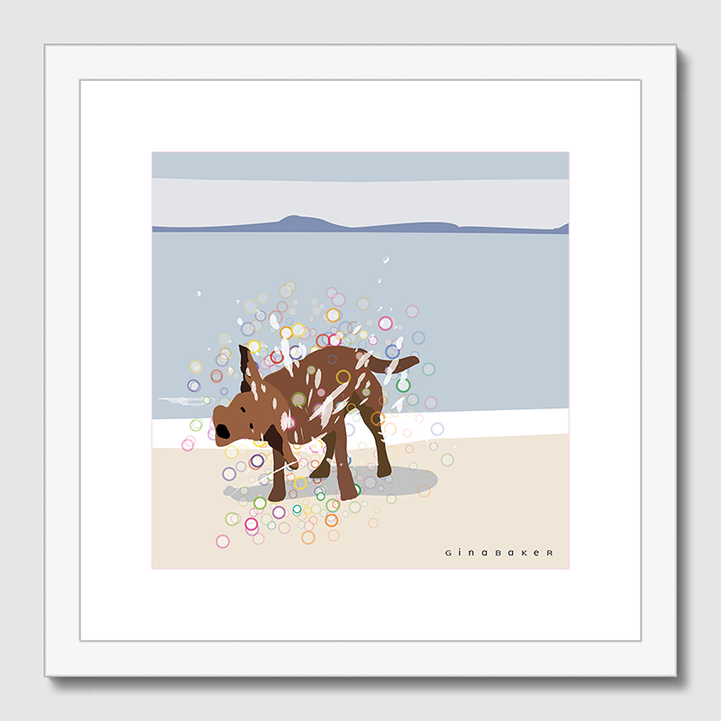 Fine-art giclée print with a white mount, glass glaze and solid wood white or black frame. Available in two sizes: