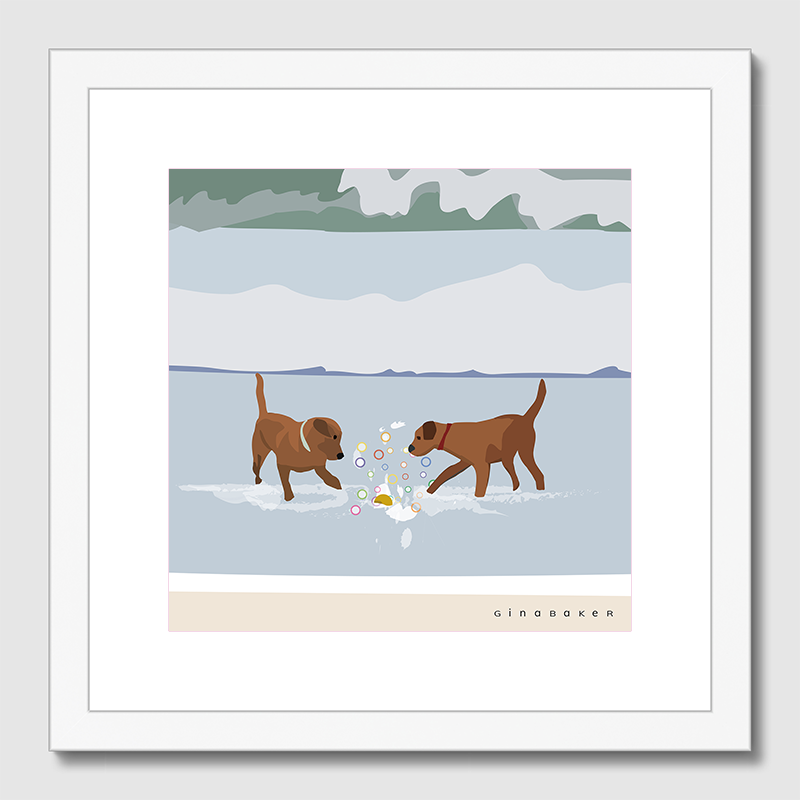 Fine-art giclée print with a white mount, glass glaze and solid wood white or black frame. Available in two sizes: